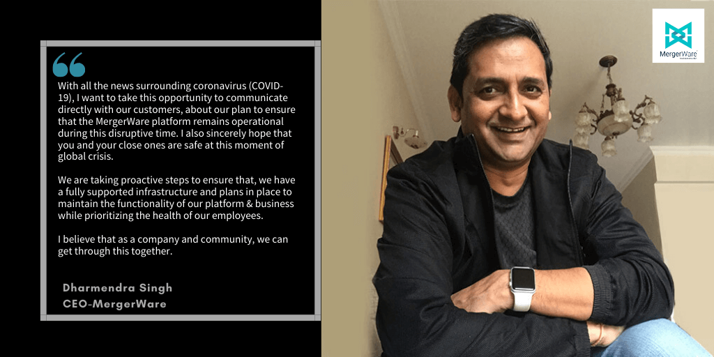 We at MergerWare want to be transparent with our team members, customers, investors and the community regarding our plans to operate safely and effectively. Our thoughts are with everyone affected by the coronavirus. We wish them a speedy recovery and good health.